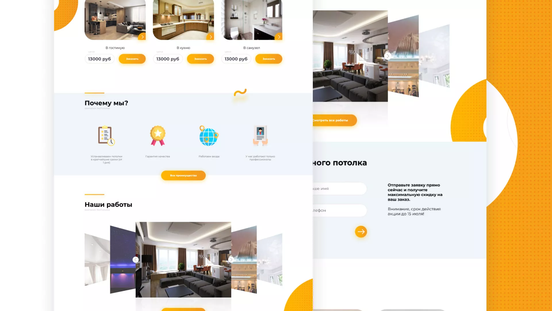 Вам нужна разработка сайта по натяжным потолкам в Северске? Специалисты компании «Мультзавод» готовы помочь! Мы предлагаем большой выбор уже готовых вариантов, а также можем создать и что-нибудь новое!